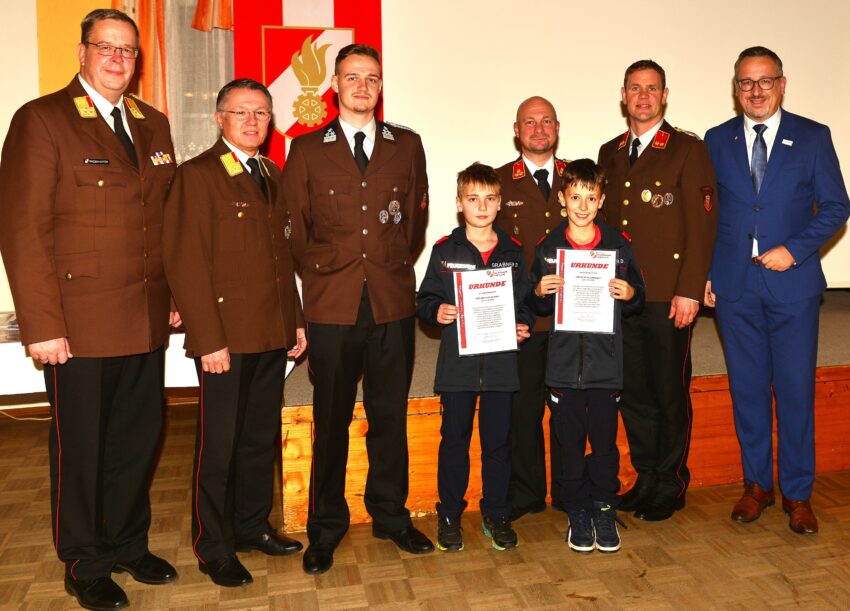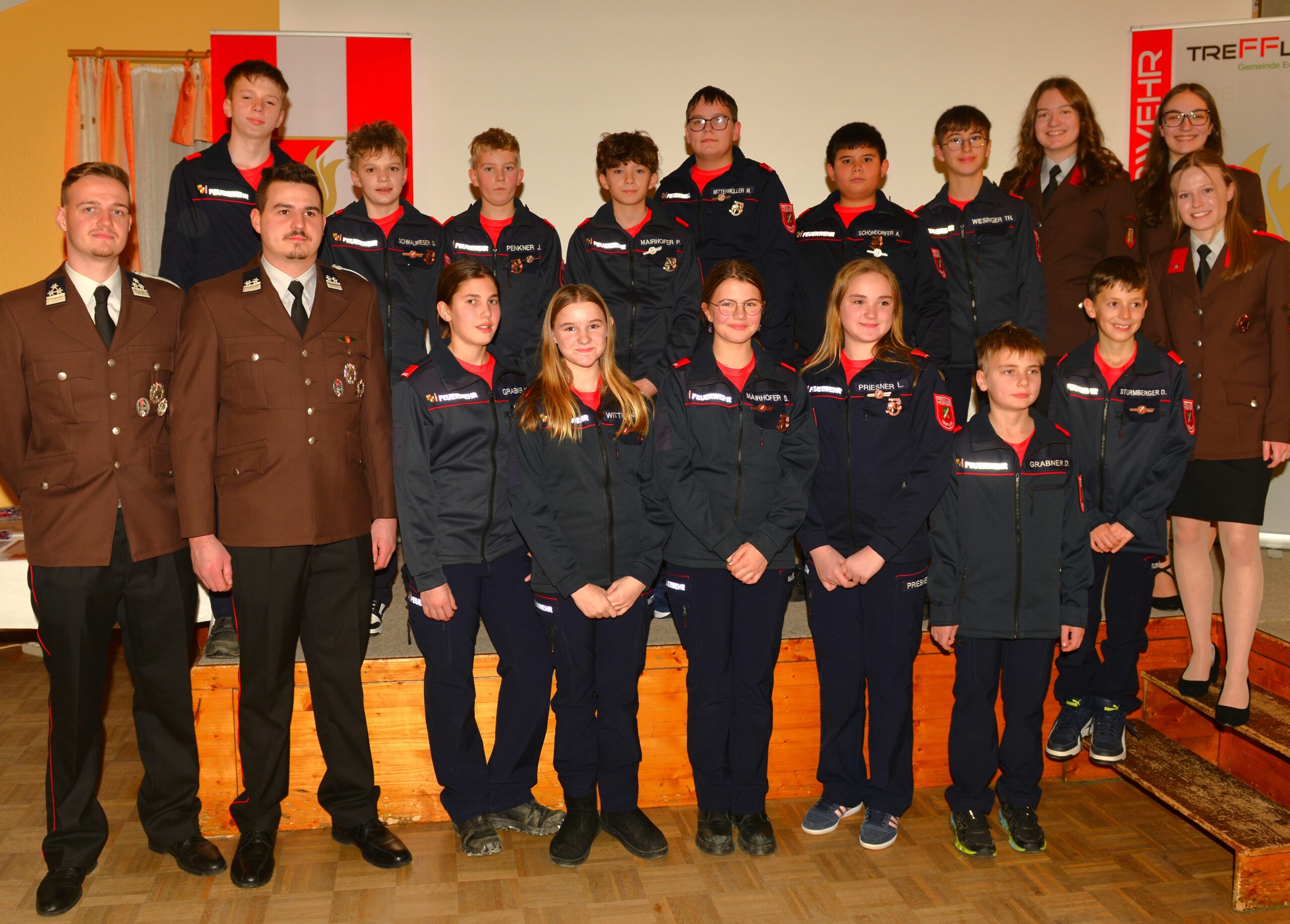 Auf die Begrüßung und Einleitung durch den Kommandanten folgte ein kurzes Totengedenken, gestaltet von Seelsorger Franz Pamminger. Weiter ging es mit den Berichten der Kommandomitglieder. Den Anfang machte Jugendbetreuer HBM d. F. Benjamin Stieger. Er präsentierte einen Rückblick auf die Aktivitäten und erzielten Erfolge der Feuerwehrjugend. In der Folge fand im feierlichen Rahmen der Jahreshauptversammlung die Angelobung von zwei neuen Feuerwehrjugend-Mitgliedern statt.