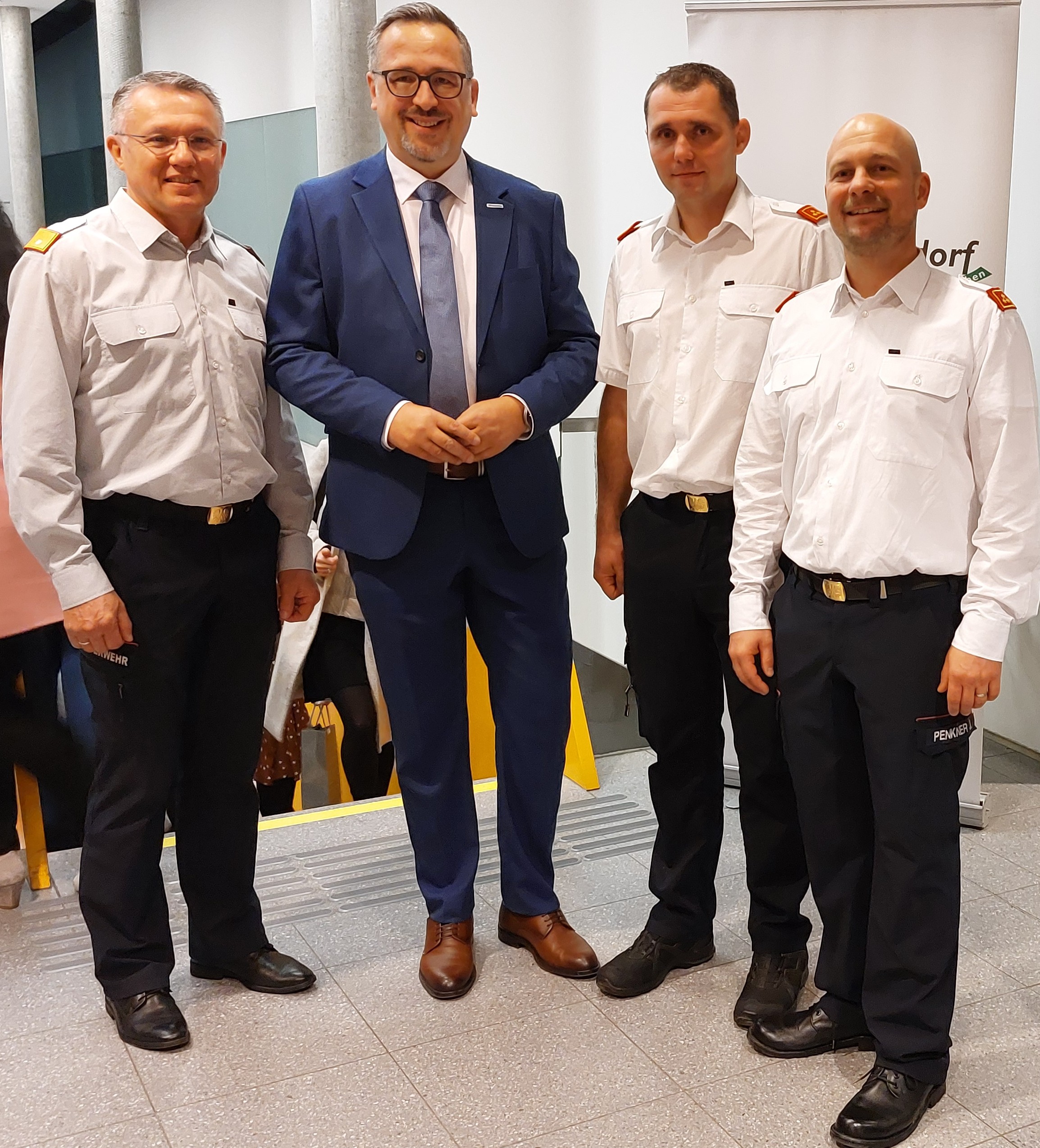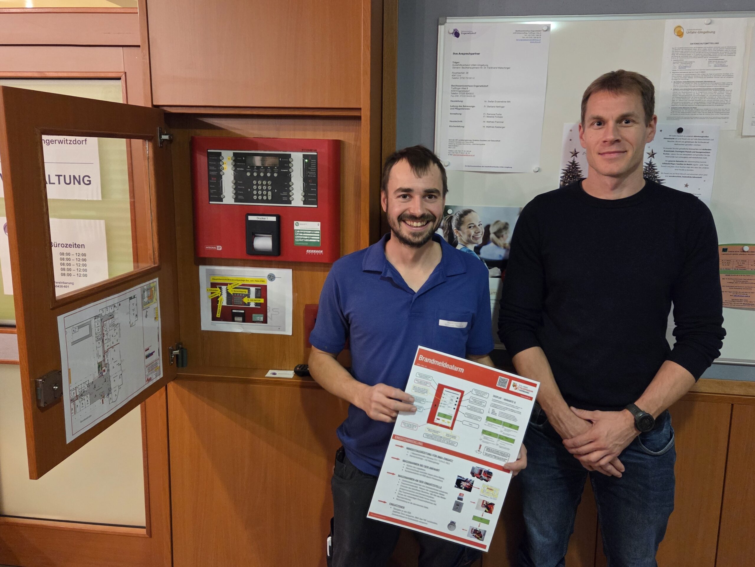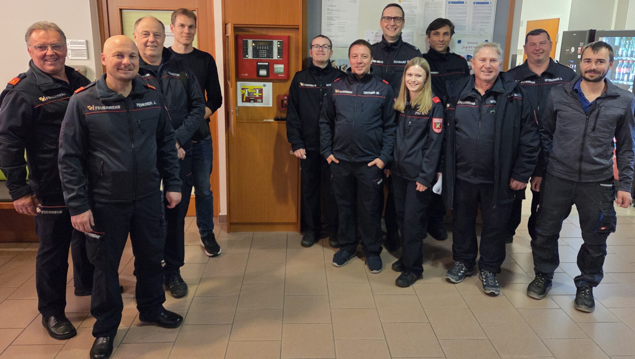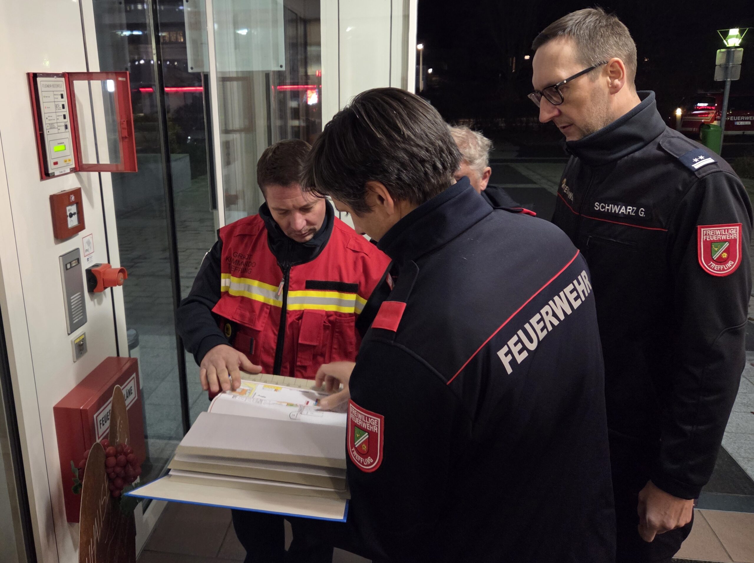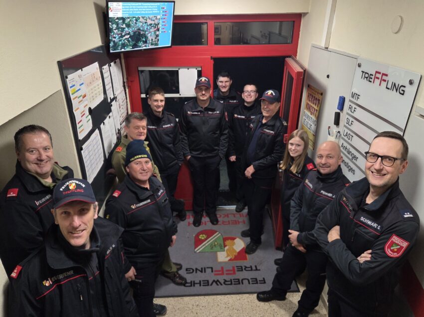 Am dritten Mittwoch im November (19.11.2025) fand um 19:00 Uhr im Bezirksseniorenhaus in Mittertreffling zuerst eine Schulung und dann eine praktische Übung zum Thema Brandschutzpläne mit insgesamt 12 Teilnehmer:innen der FF Treffling statt. Der neue Hausleiter Stefan Enzenebner MA stellte sich vor und Kommandant HBI Ing. Jürgen Penkner erklärte auf Basis der Brandschutzpläne des Hauses etwaige Einsatzszenarien und deren Abwicklung. Nach dem Theorieteil folgte der praktische Teil: Unser Kamerad Haustechniker OBM d. F. Mathias Prammer simulierte mit der Brandmeldeanlage (BMA) des Hauses Brand-Einsatzszenarien indem er einen oder mehrere Brandmelder für diese Übung auslöste. Die Übungsteilnehmer:innen mussten den Ablauf wie im Ernstfall durchspielen: Öffnen des Feuerwehr-Schlüsselsafes, Zutritt über den Hauptangriffsweg, ausgelöste Brandmelder am Feuerwehrbedienfeld der BMA ablesen, Lageerkundung, Kommunikation per Funk, usw. Jene Brandmelder, die die Alarmierung ausgelöst hatten, mussten im Gebäude so rasch wie möglich gefunden werden. Ein optimales Training in Friedenszeiten für eine möglichst rasche und professionelle Einsatzabwicklung im Ernstfall!
