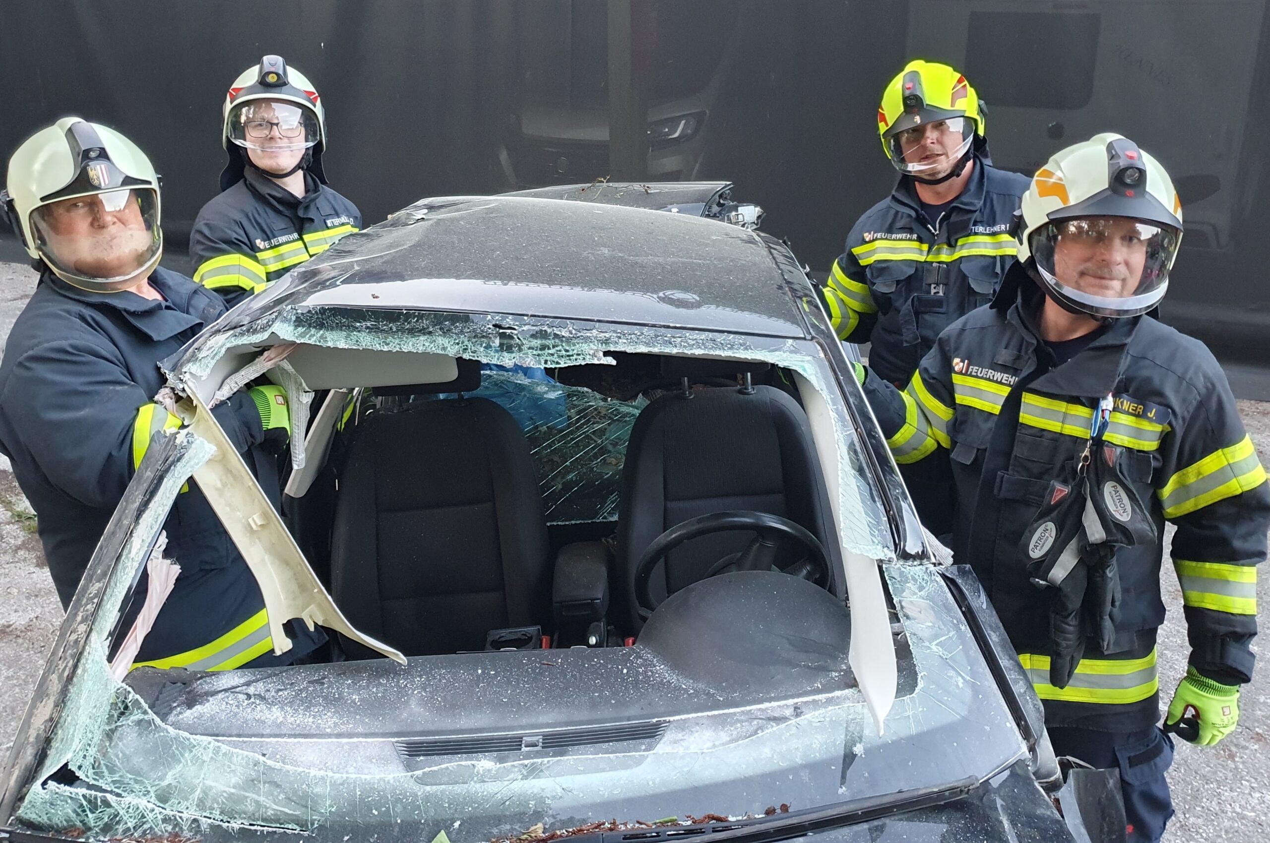 Am Mittwoch, den 14. Mai 2025 fand auf dem Gelände der Firma KFZ Pichler unter der Leitung von OBM Stefan Pfarrhofer ein Stationsbetrieb zur technischen Ausbildung bei Verkehrsunfällen statt. Bei der ersten Station wurde mit zwei bereitgestellten Unfallfahrzeugen intensiv die Meschenrettung mit dem hydraulischen Rettungsgerät geübt. Dabei wurden die Fahrzeuge Schritt für Schritt beginnend mit den Fensterscheiben bis hin zur Entfernung des gesamten Fahrzeugdaches fachgerecht zerlegt. Bei der zweiten Station schulte OBM Stefan Pfarrhofer die Übungsteilnehmer zu den Besonderheiten bei Unfällen mit Elektrofahrzeugen. Eine besondere Gefahr geht dabei von etwaigen Akku-Bränden aus. Anhand der “Euro-Rescue-APP” wurden die Rettungskarten von Fahrzeugen studiert, um zu entscheiden, wie sie im Ernstfall optimal mit dem hydraulischen Rettungsgeräte bearbeitet werden können, und wie sie schnellstmöglich stromlos gemacht werden können. Wir bedanken uns bei Erwin Pichler und Stefan Pfarrhofer für die Bereitstellung von Übungs-Fahrzeugen und Firmengelände und bei den Teilnehmer:innen für ihr Engagement bei dieser wichtigen praktischen Ausbildung!