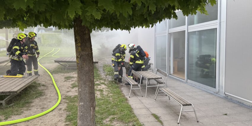 Am Mittwoch, den 21.05.2025 fand ab 19:00 Uhr die jährliche Zugsübung der FF Treffling mit den Fahrzeugen MTF, SLF, RLF und LAST und insgesamt 28 Kamerad:innen statt. Die Übungsleiter Kommandant HBI Ing. Jürgen Penkner und Zugskommandant BI Christoph Schwarz haben ein anspruchsvolles Szenario vorbereitet: In der Volksschule Mittertreffling war es bei dieser Übung zu einem angenommenen Maschinendefekt im Werkraum der Volksschule Mittertreffling gekommen, der eine von zwei anwesenden Personen verletzte und einen Brand auslöste. Nach dem Eintreffen von Einsatzleiter OBM d. F. Mathias Prammer stellte dieser nach der Befragung und Lageerkundung fest, dass der gesamte Werkraum stark verraucht war, und dass es eine vermisste Person gab. Er ordnete sofort einen Innenangriff zur Menschenrettung und Brandbekämpfung des Atemschutztrupps des SLF mit dem Schlauchtragekorb über den Haupteingang an. Dabei kam beim Eingang zum Werkraum auch der Rauchvorhang zum Einsatz. Gleichzeitig baute der Angriffstrupp des RLF einen Außenangriff zum Werkraum über den “Mondplatz” vor der Volksschule auf. Nachdem eine Abluftöffnung geschaffen wurde, startete die Hochdruckbelüftung und der Atemschutztrupp übergab die gerettete Person (unsere Rettungs-Puppe “Karl-Heinz”) zur weiteren medizinischen Versorgung fiktiv an das Rote Kreuz. Die Mannschaft des LAST baute eine Wasserversorgung vom Hydranten in der Kurve neben dem Bezirksseniorenheim zum SLF auf. Als zusätzliche Herausforderung ordnete der Übungsleiter das Herauslösen des RLF während des Einsatzes an. Nach der Meldung “Brand aus” und nachdem der gesamte Rauch durch die Belüftung entfernt war, wurde die Übung beendet. Es gab dann vor Ort noch eine kurze Nachbesprechung bevor die FF Treffling nach rund zwei Stunden wieder in das Feuerwehrhaus einrücken konnte.