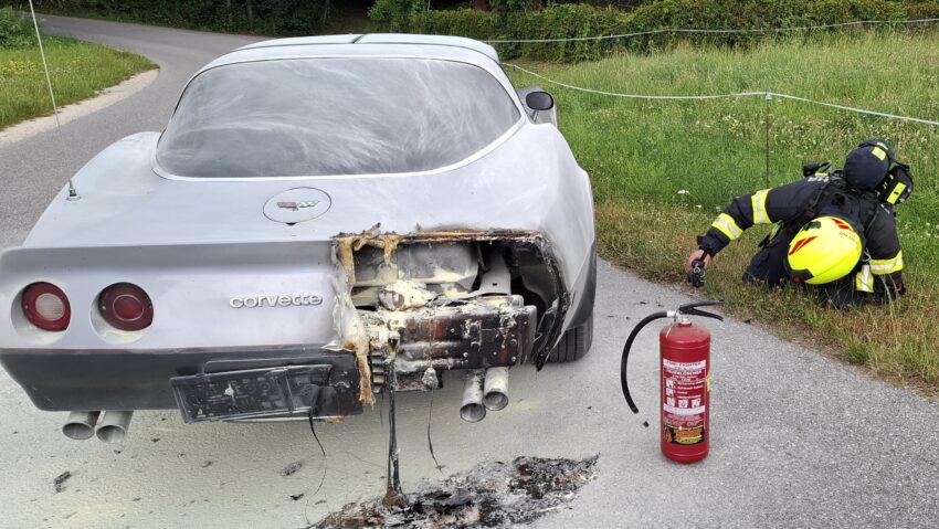 Am Montag, den 23.06.2025 wurde die FF Treffling um 15:46 Uhr zum Einsatz “Brand PKW im Freien” alarmiert. Im Ortsteil Zinngießing geriet ein PKW hinten rechts beim Heck während der Fahrt aus unbekannter Ursache in Brand. Unser Kamerad Daniel Mayr hörte die Sirene, sprang ins Auto und fuhr los zum Feuerwehrhaus. Wenige Meter neben seinem landwirtschaftlichen Anwesen sah er dann den brennenden PKW, drehte rasch um, holte bei ihm daheim einen Pulver-Feuerlöscher und löschte den KFZ-Brand ab. Aufgrund seines beherzten Eingreifens waren für die eintreffende Feuerwehr unter dem Kommando von Einsatzleiter OBI Martin Mairhofer keine weiteren Löscharbeiten mehr notwendig. Die Gemeindestraße am Einsatzort wurde abgesichert und ein zweifacher Brandschutz aufgebaut. Das Abkühlen des Fahrzeuges wurde mit der Wärmebildkamera kontrolliert. Schließlich wurde die Straße noch gereinigt. Nach rund 45 Minuten konnte die FF Treffling den Einsatz beenden und mit den beiden Fahrzeugen SLF und RLF und 16 Einsatzkräften wieder in das Feuerwehrhaus einrücken.