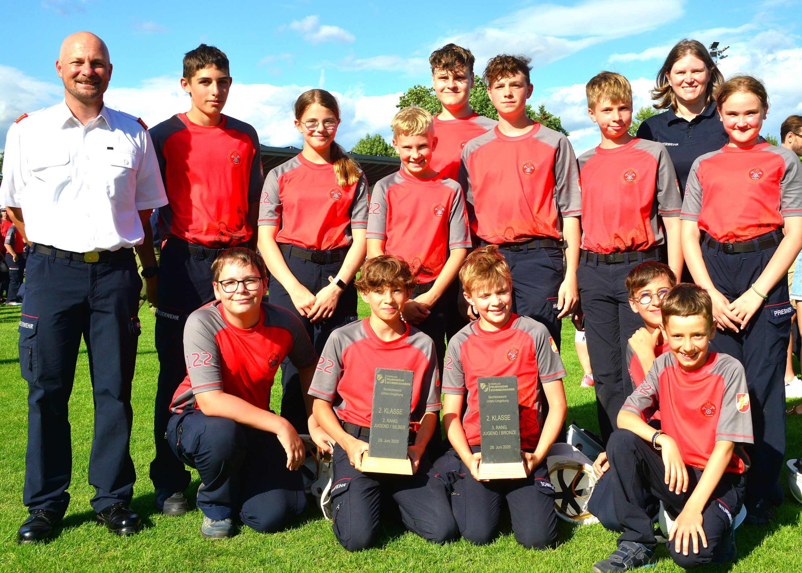 Am Samstag, den 28.06.2025 fand der Abschnittsbewerb mit Bezirkswertung der FF Schmiedgassen am Sportplatz in Schweinbach statt. Sowohl die Feuerwehrjugend als auch die Bewerbsgruppe der Aktiven der FF Treffling konnten bei diesem Bewerb der Nachbarfeuerwehr tolle Erfolge erzielen. Die Jugendgruppe lieferte beim Bewerbslauf in BRONZE mit nur 53 Sekunden (fehlerfrei!) eine hervorragende Leistung ab. Auch das Ergebnis in SILBER mit 58 Sekunden beim Bewerbslauf und leider 5 Fehlerpunkten konnte sich sehen lassen. Letztlich erlangte die Jugendgruppe “Treffling1” in der 2. Liga der Bezirkswertung des Jahres 2025 in BRONZE den 3. Rang und in SILBER sogar den 2. Rang. Die Bewerbsgruppe der Aktiven “Treffling1” schaffte in BRONZE beim Bewerbslauf eine hervorragende Zeit von nur 36.90 Sekunden fehlerfrei und in SILBER 37.40 Sekunden fehlerfrei. Die Wertung der Bezirksliga A 2025 wurde in BRONZE mit dem 5. Rang und in SILBER mit dem 3. Rang abgeschlossen. Alle Kamerad:innen der FF Treffling sind unheimlich stolz auf unsere Jugendgruppe und auf die Bewerbsgruppe der Aktiven. Beim Bewerb der FF Schmiedgassen waren entsprechend viele Unterstützer:innen der FF Treffling vor Ort und feuerten unsere Bewerbsgruppen lautstark an.