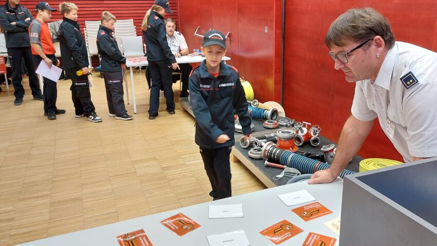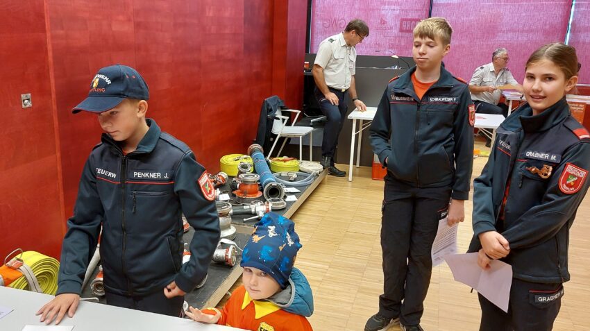 Am Samstag, den 4. Oktober 2025 fand im Kulturzentrum “Im Schöffl” in Schweinbach die praktische Prüfung des Feuerwehrjugend Wissenstests statt. Die Kandidat:innen der FF Treffling wurden schon seit Ende August unter der fachkundigen Anleitung unseres Jugendbetreuers HBM d. F. Benjamin Stieger mit seinem Ausbildner:innen-Team trainiert. Die Theorie-Fragen und die Theorie-Prüfung wurden vorab bereits mit der dafür vorgesehenen App auf den Handys geübt und geprüft. Bei der Abnahme der praktischen Prüfung haben dann auch alle fünf Teilnehmer:innen der FF Treffling ihr Wissen und ihr Können unter Beweis gestellt und die Prüfung souverän gemeistert. Kommandant HBI Ing. Jürgen Penkner war extra mitgereist und motivierte die Jugendlichen. Schließlich haben alle das verdiente Leistungsabzeichen von Bezirksfeuerwehrkommandant OBR Ing. Johannes Enzenhofer überreicht bekommen. Wir bedanken uns recht herzlich bei unseren Jugendbetreuer:innen für die hervorragende Vorbereitungsarbeit und dürfen den folgenden Mitgliedern der Feuerwehrjugend der FF Treffling zum ausgezeichneten Prüfungserfolg und zum bestandenen Feuerwehrjugend-Wissenstest-Leistungsabzeichen gratulieren: